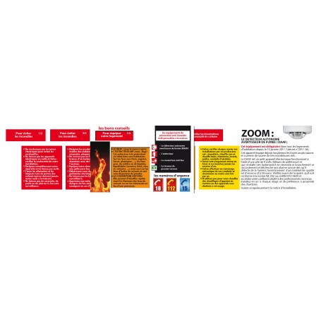 Cette réglette synthétise au mieux les gestes de bon sens et met en avant le DAAF (détecteur Autonome Avertisseur de Fumée) et les principaux matériels de prévention incendie.