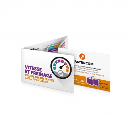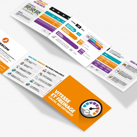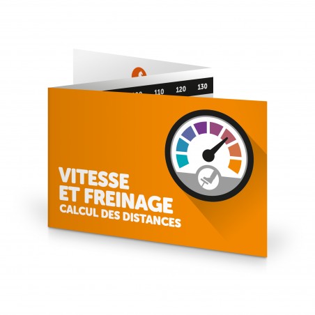 Réglette de calcul simple et immédiat du temps de réaction, de freinage et d'arrêt complétée de 4 volets de sensibilisation pédagogique.