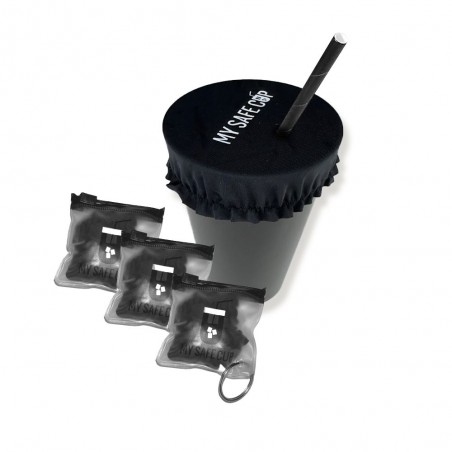 MY SAFE CUP - Protection de verre format porte-clés - Disponible par lot de 50 ex. (pailles offertes) - Stock limité