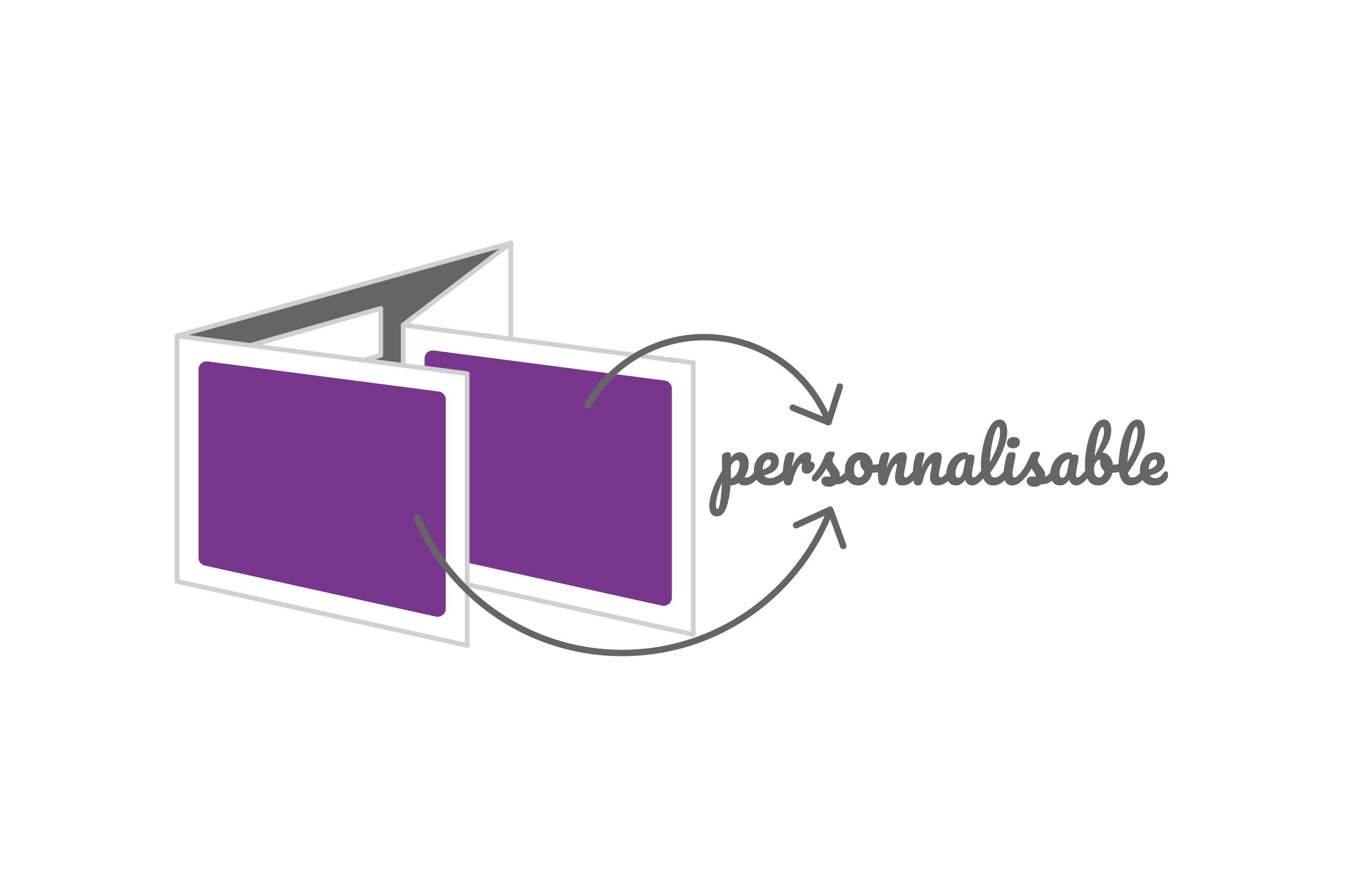 - Forfait 1 - Personnalisation Standard : intégration de votre logo, d'un message et/ou de vos coordonnées sur le volet intérieur prévu à cet effet.