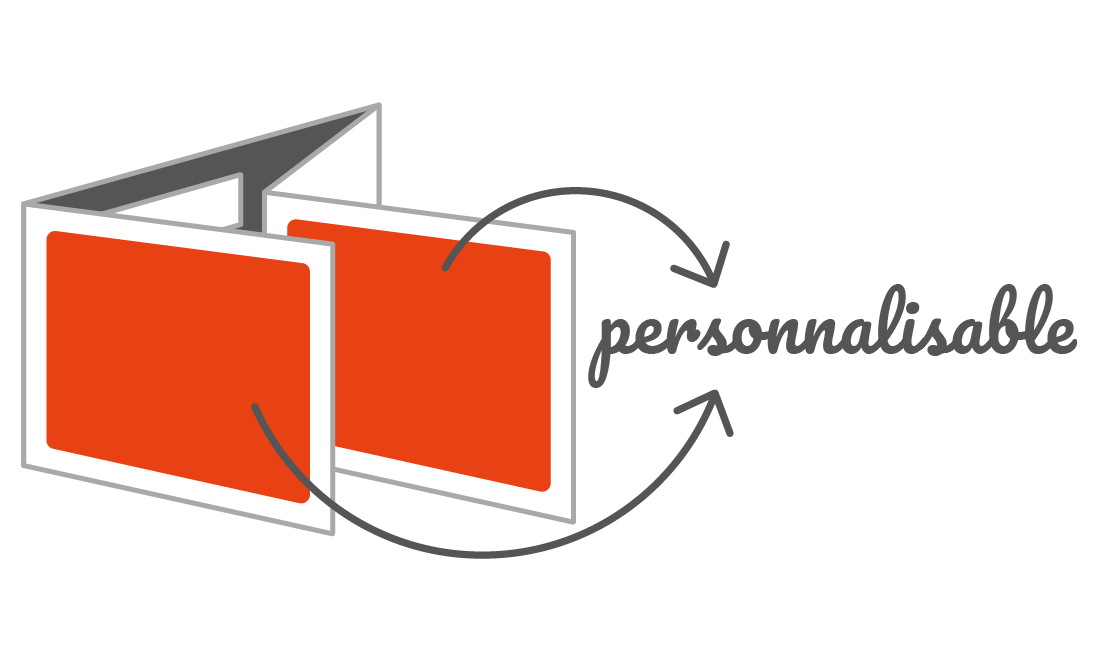 - Forfait 1 - Personnalisation Standard : intégration de votre logo, d'un message et/ou de vos coordonnées sur le volet intérieur prévu à cet effet.
