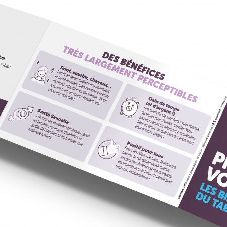 Via ses messages courts et positifs, ce support met en avant une chronologie des bienfaits de l'abandon du tabac sur la santé avec des arguments qui paraissent concrets pour tous les fumeurs.