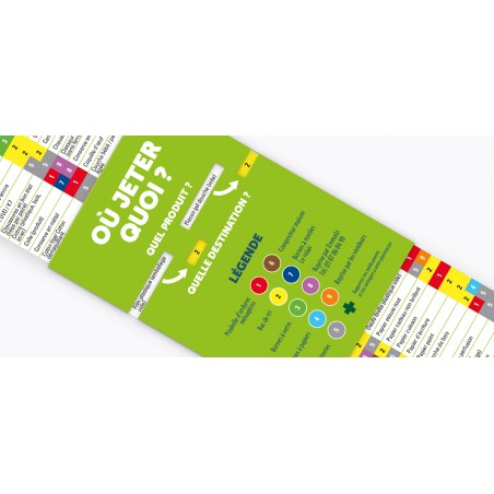 Entièrement personnalisable, elle est l'outil indispensable pour la mémorisation du tri des déchets destiné au grand public. Elle peut être accompagnée d'un aimant lui permettant de trouver sa place sur un réfrigérateur par exemple.