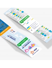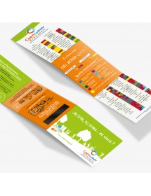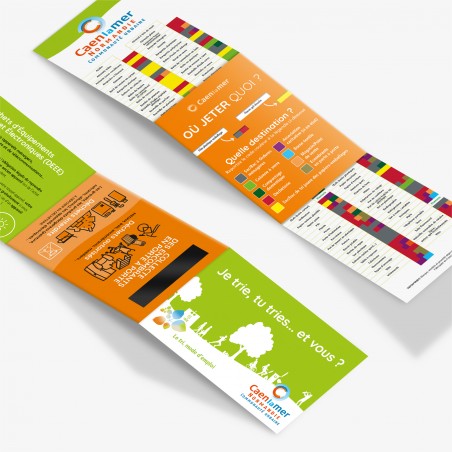 Type : réglette 3 volets, pli roulé. Option pelliculage brillant et option aimant au dos du fourreau