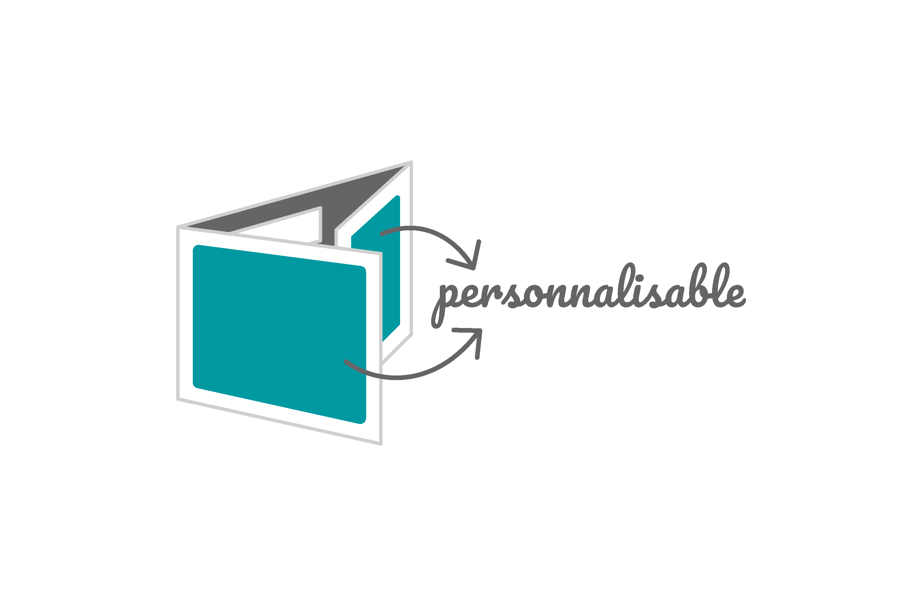 • Forfait 1 - Personnalisation Standard : intégration de votre logo, message et/ou coordonnées sur le volet intérieur prévu à cet effet.