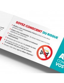 La version neutre dispose d’une partie vierge qui vous permettra d’apposer votre tampon ou votre autocollant et d’écrire un message particulier à destination de votre public. Une solution simple, rapide et économique pour promouvoir vos actions de prévention.
