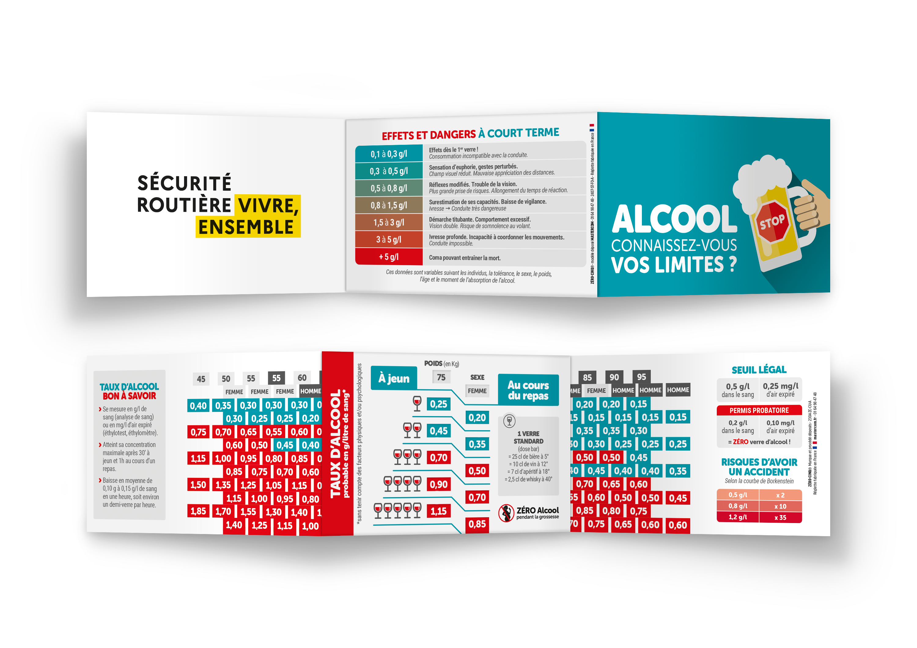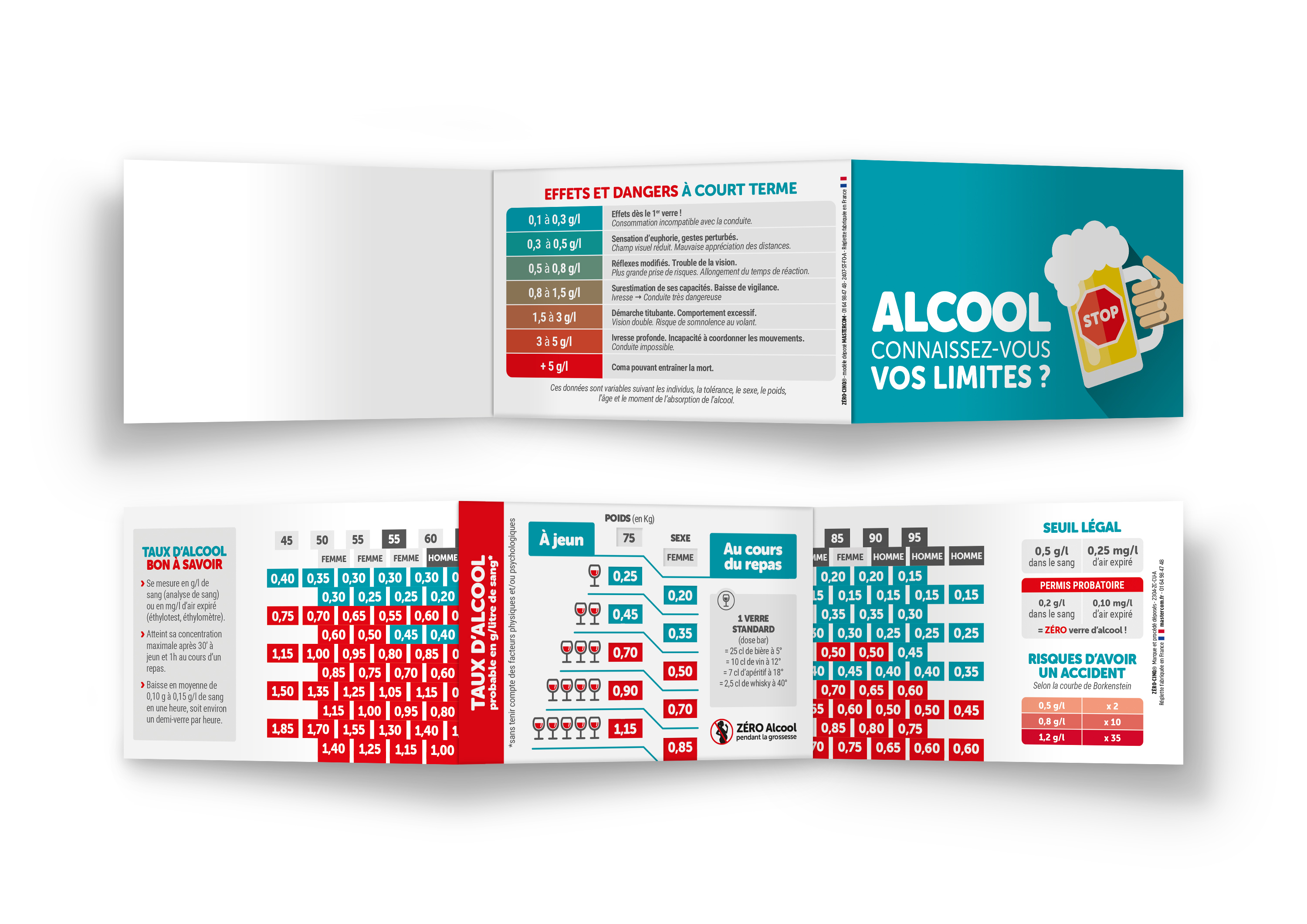 Voici le support de prévention de l'alcool le plus diffusé en Europe à ce jour (plus de 4 millions d'exemplaires). Zéro-cinq@ synthétise au mieux la lecture directe du taux d'alcool probable en tenant compte des principaux paramètres que sont le nombre de verres, le sexe, le poids et le fait d'être à jeun ou non. Un concentré de conseils essentiels accompagne cette grille de lecture.