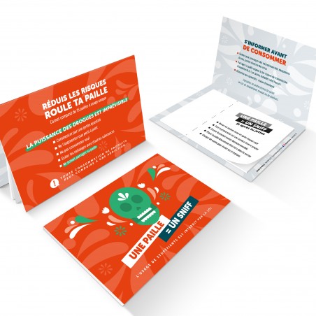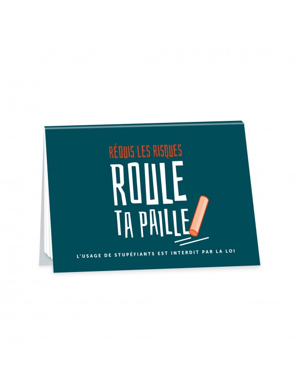 Les ROULE TA PAILLE se présentent sous la forme de carnet de 15 feuilles détachables prêtes à être roulées pour former des pailles destinées au sniff de produits psychoactifs. Leur distribution permet de promouvoir la paille à usage unique et la diffusion de messages de prévention pour une consommation à moindre risque.
