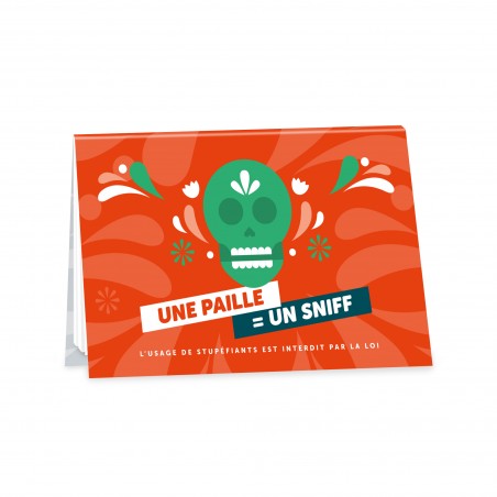 Retrouvez sur ce carnet l'essentiel des conseils de réduction des risques comme 'Ne jamais partager sa paille' ou 'Une paille = Un Sniff et après tu jettes'. Disponible à partir de 25 exemplaires, une solution pratique et économique pour accompagner vos actions de prévention.