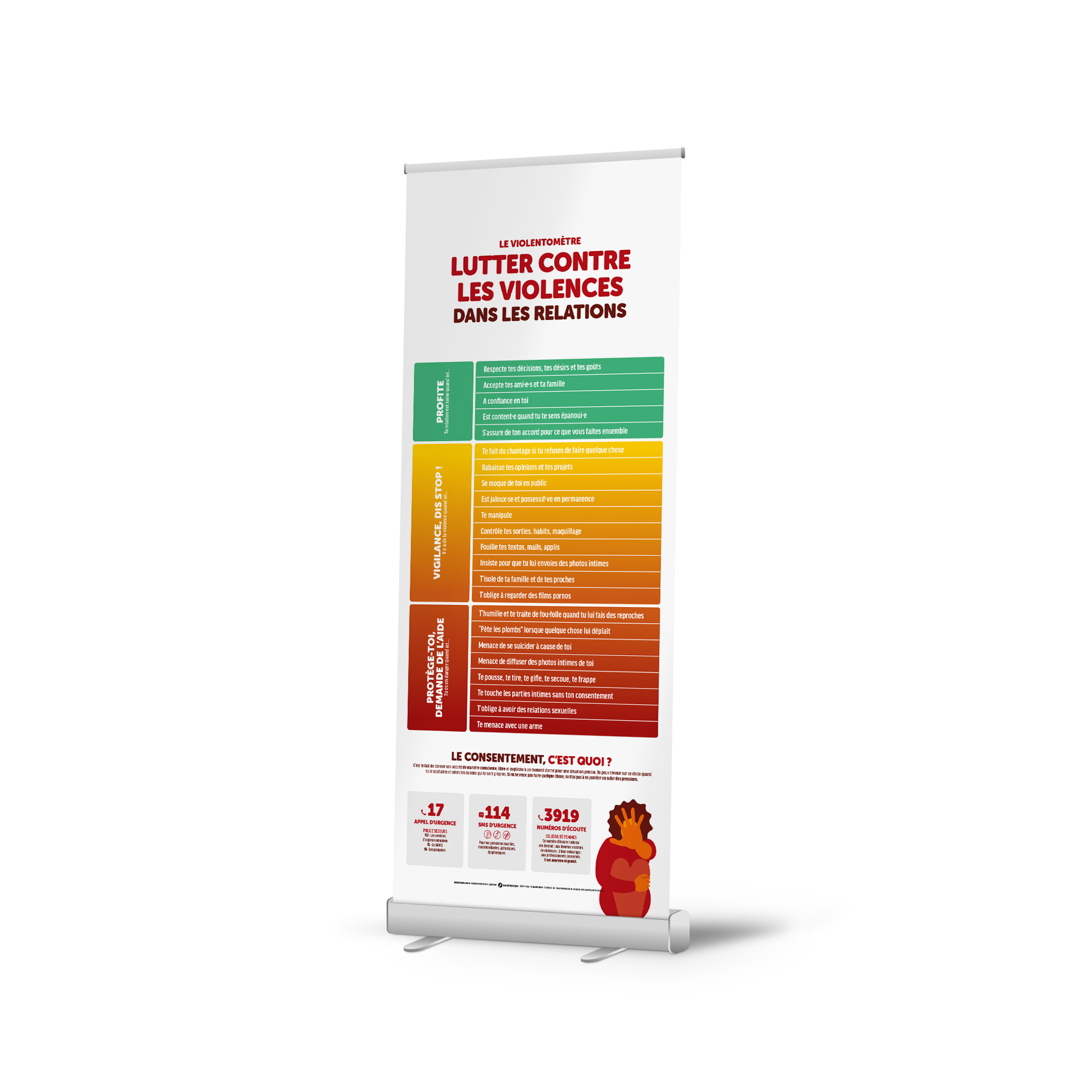 Le Roll-Up Violentomètre Mastercom est votre outil grand format pour la prévention des violences et la sensibilisation aux comportements toxiques dans les relations. Facile à déployer, il rend l'information accessible et percutante en tout lieu.