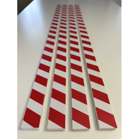 - 4 barres obstacles : barres blanches en Viscom de 10 mm d'épaisseur, longueur 85 cm, impression r°/v° zébra rouge ;