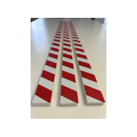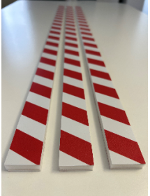 - 3 barres obstacles : barres blanches en Viscom de 10 mm d'épaisseur, longueur 85 cm, impression r°/v° zébra rouge ;